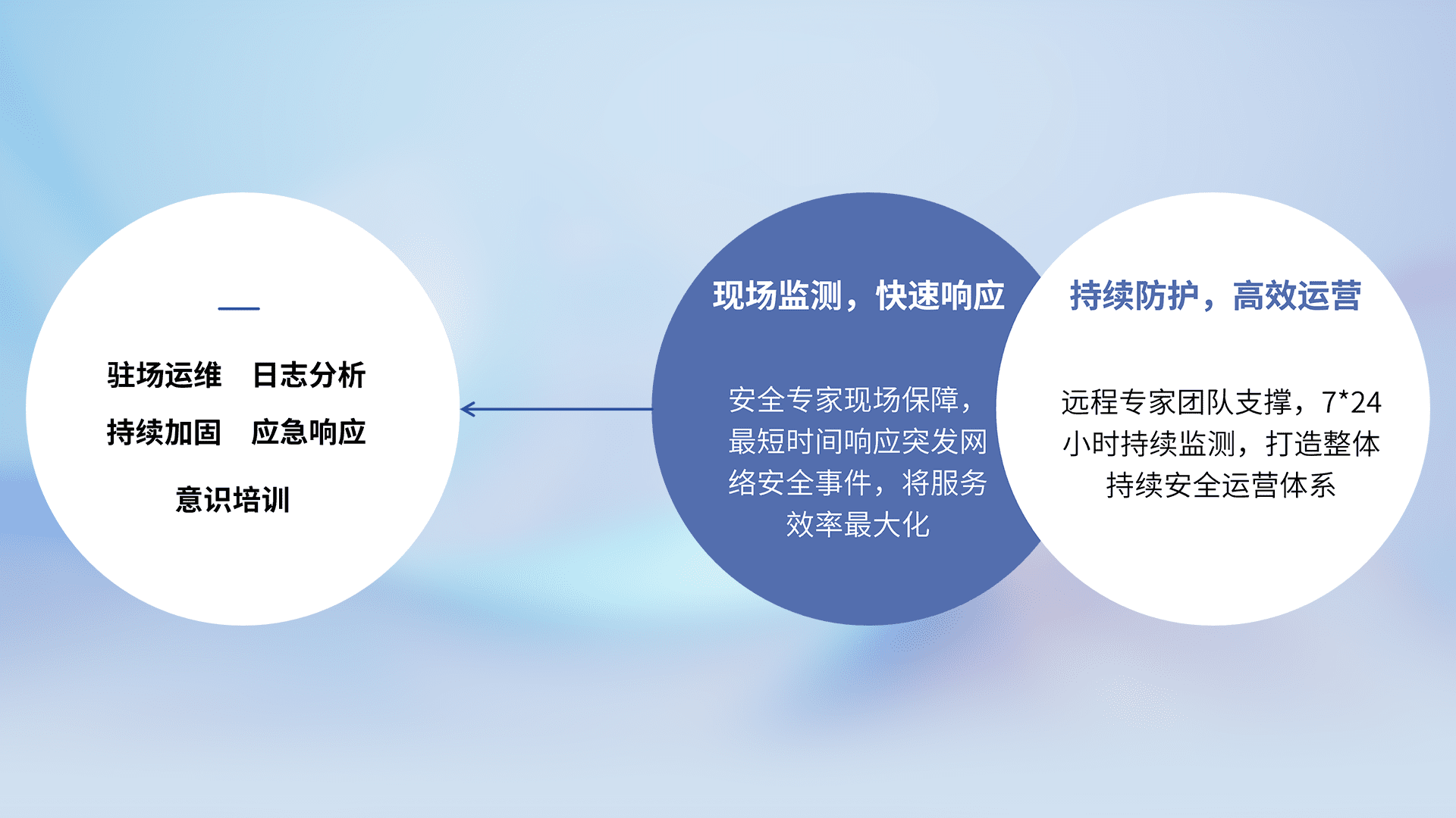 7X24小时持续监测安全事件,保持安全策略有效性,降低资产脆弱性风险,,,精准拦截黑客攻击,,,,减少被黑客利用的机会,,,第一时间遏制,,,降低损失。。。。