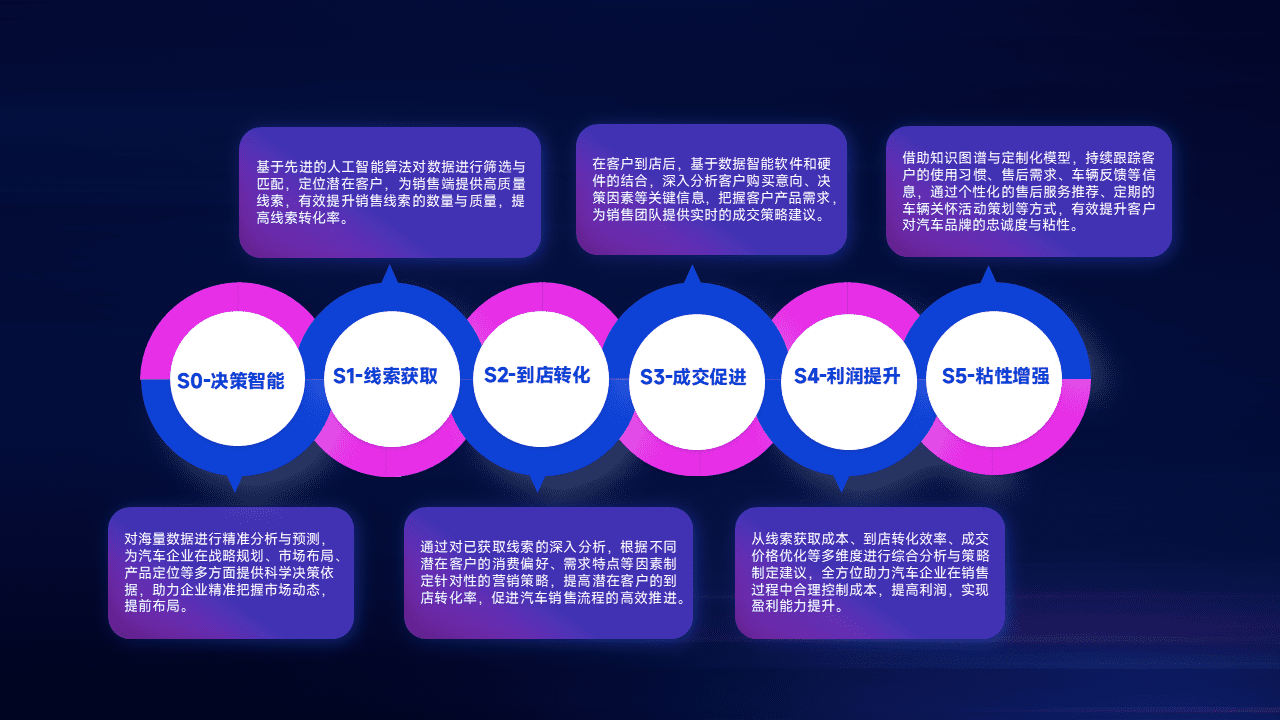 通过拓宽潜在客户来源、、、优化线索分配并提高到店转化率,,,以增强销售效率。。。同时,,,,利用线索数据不断优化分析模型,,有效提升转化率,,,扩大营销影响力。。